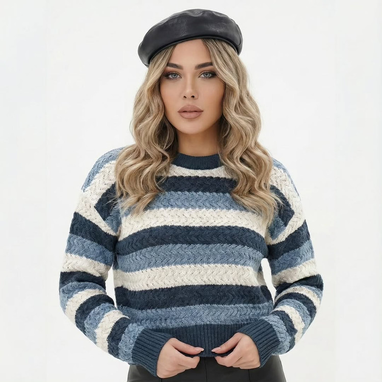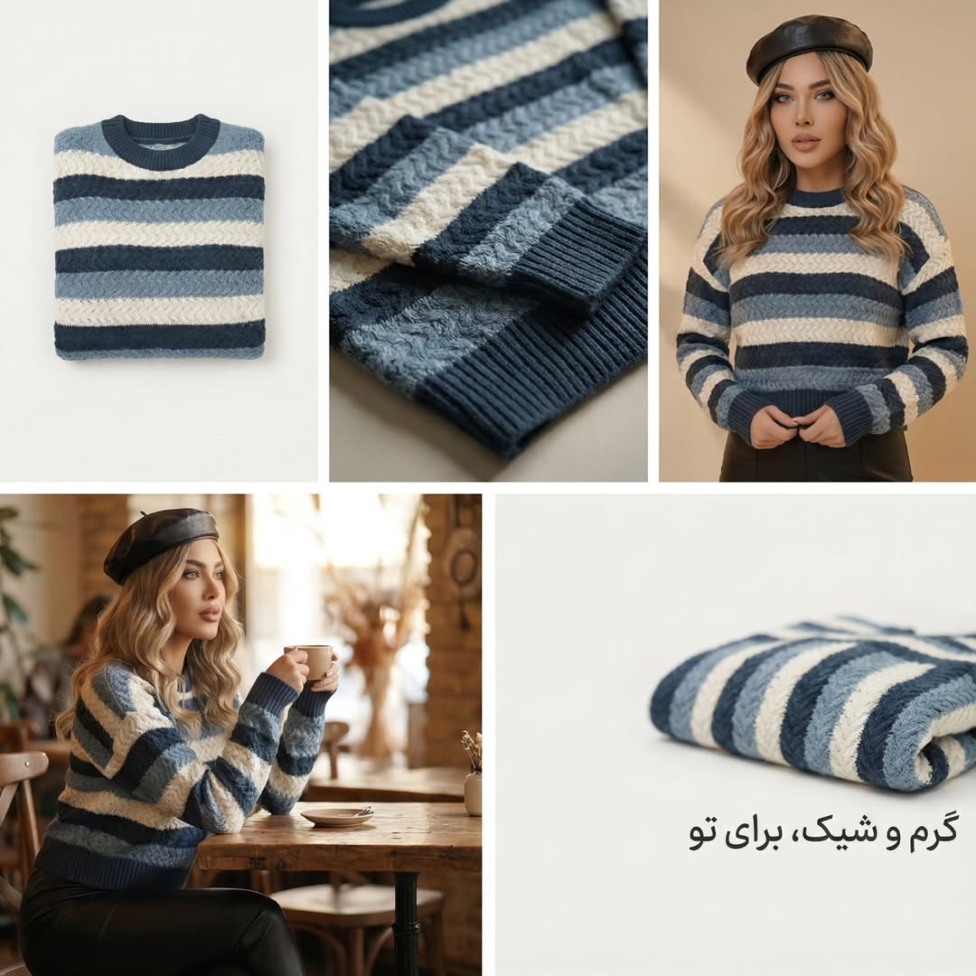 بلوز بافت کراپ طرح حصیربافی سه رنگ پهن